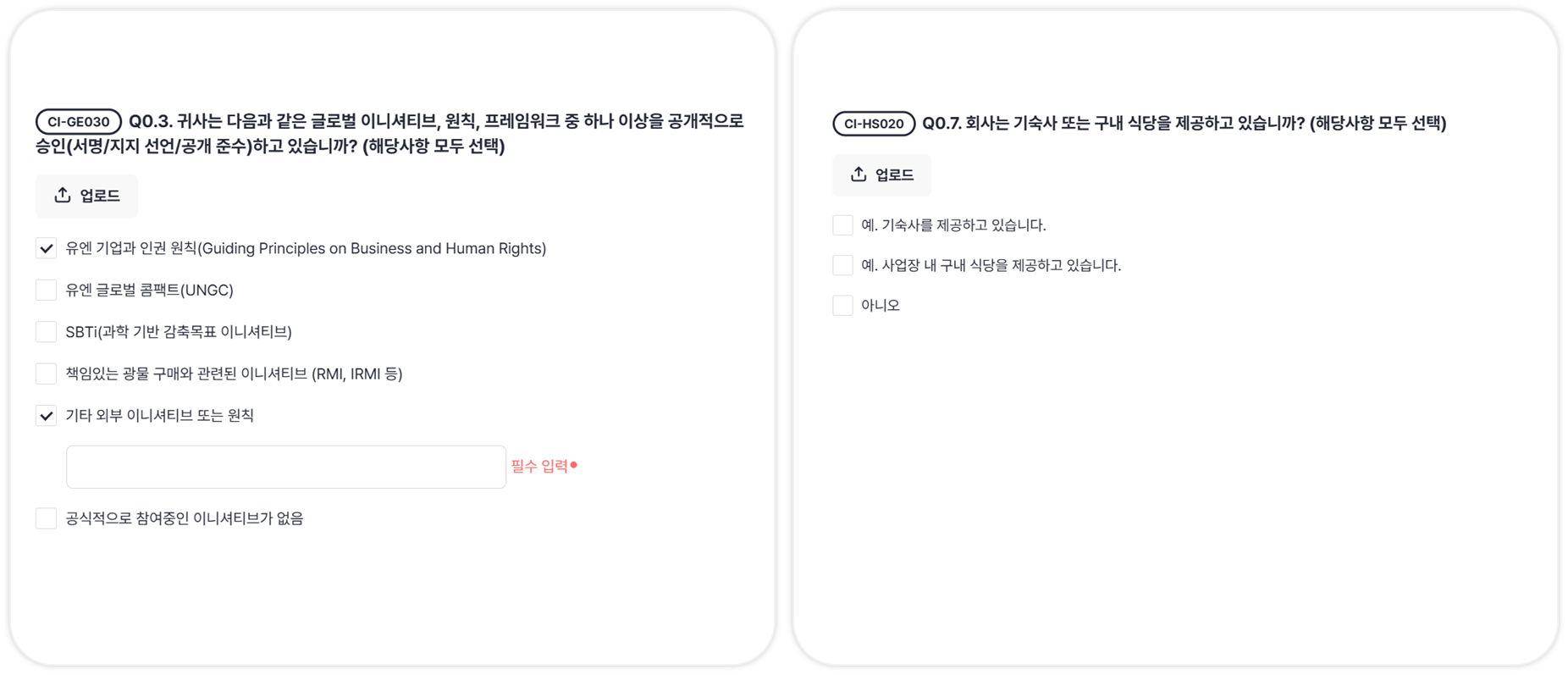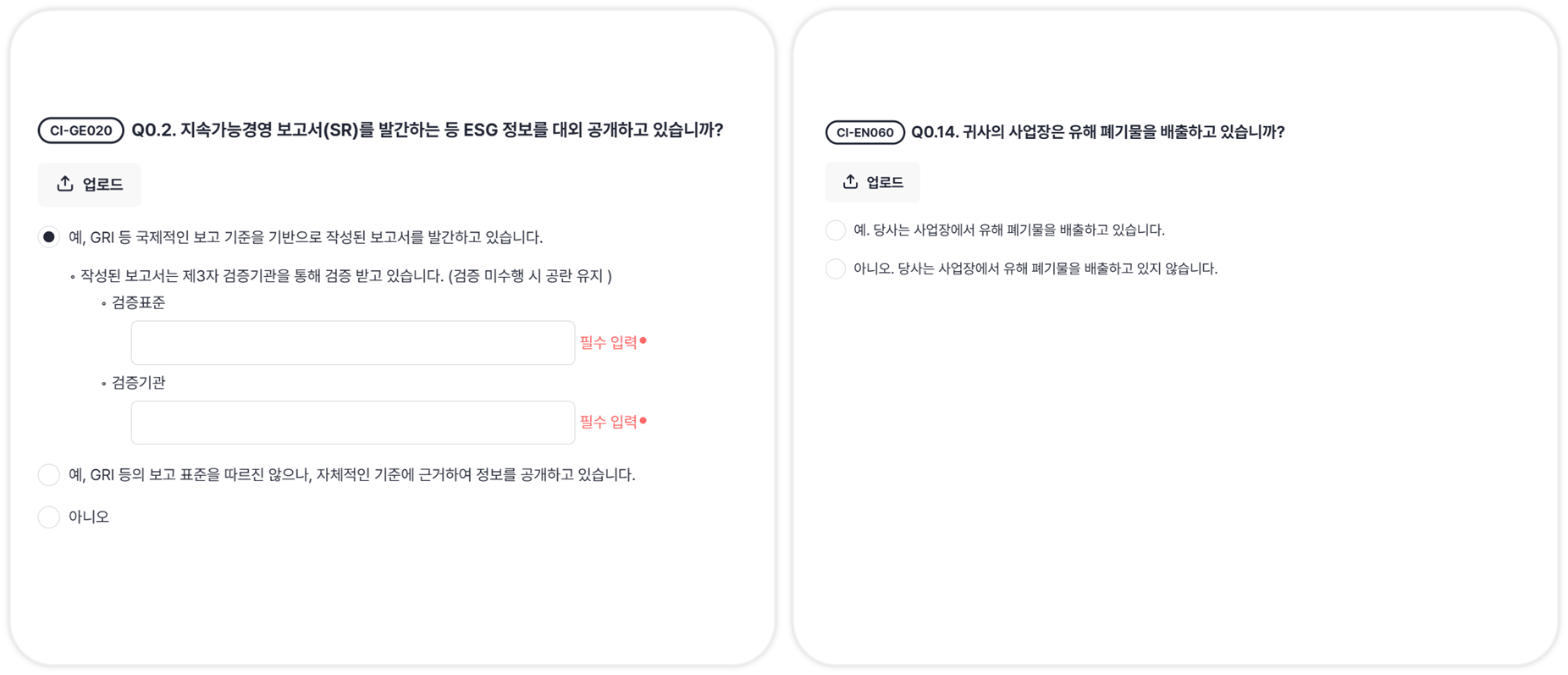 각 문항마다 답변을 입력하고, 연관된 증빙자료를 함께 제출해주세요.