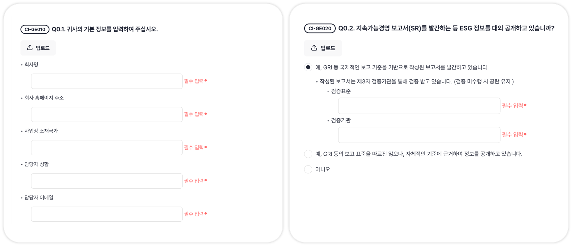 필수 입력으로 표시된 항목들에 모두 답변을 작성해주세요.
